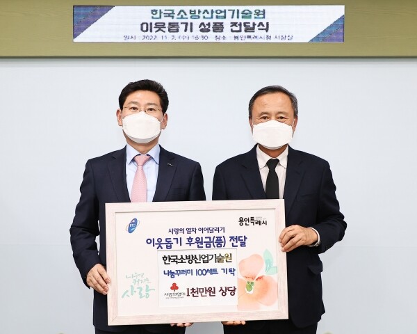 이날 김원술 한국소방산업기술원 경영기획이사 등 관계자 3명은 이상일 용인특례시장실을 방문해 직접 기탁을 하고 환담을 나눴다.