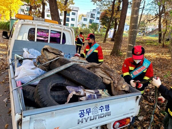 산불방지에 대한 경각심을 고취시키기 위해 동산동 지역 앵봉산에 산불조심 안내 현수막 게시 및 산림 인화 물질 제거 등 산불예방 캠페인을 실시했다.