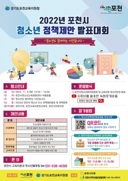 대회에서는 선정된 7건의 정책과 포천시 청소년참여위원회가 제안한 정책 1건 등 총 8건의 정책을 발표한다.