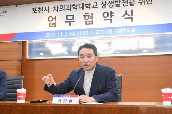 백영현 포천시장은 “학령인구 감소와 지역소멸이라는 위기에 대처하기 위해 지자체와 대학의 협력이 절실히 필요한 때 포천시와 차의과학대학교 양 기관이 뜻깊은 자리를 가지게 됐다.