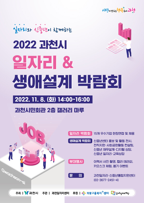 신계용 과천시장은 “이번 일자리 박람회가 인재 채용과 취업에 어려움을 겪는 기업과 구직자들에게 좋은 기회가 되었으면 하고 보다 많은 시민이 참여해 만족하는 일자리를 찾을 수 있기를 바란다”고 전했다.