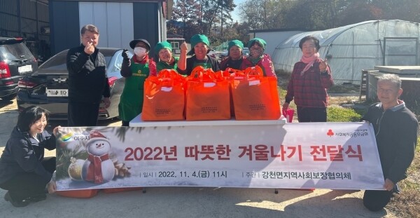 ‘따뜻한 겨울나기 사업’은 강천면 민관협력사업으로 지역 내 저소득·복지사각지대 가구의 동절기 안전을 위해 추진하는 사업으로 각 마을 부녀회장과 협의체위원이 관내 52가구의 안부를 확인하며 방한의류를 전달할 예정이다.
