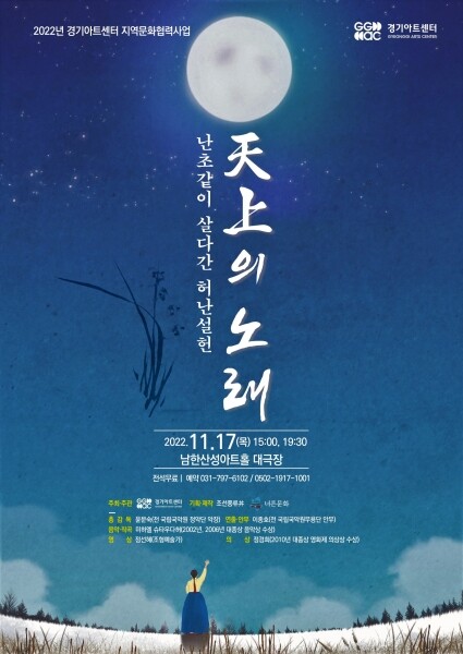 경기아트센터 관계자는 “경기도 각 시·군의 고유한 공연콘텐츠를 발굴해 더 많은 이들에게 우수한 지역 콘텐츠를 소개할 예정” 이라며 “관객들은 전통과 현대가 어우러진 이번 무대를 통해 허난설헌의 삶에 더 가까이 다가갈 수 있을 것”이라고 전했다.