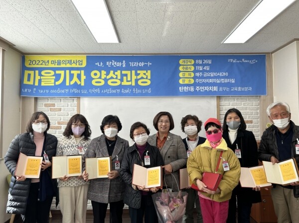 조경순 탄현1동 주민자치회장은 “마을기자 양성과정에 참여해주신 탄현1동 명예 마을기자들께 감사하고 축하드린다”며“이번 탄현1동 4분기 마을신문인‘ 숯향기마을 29호’가 기대된다”고 말했다.