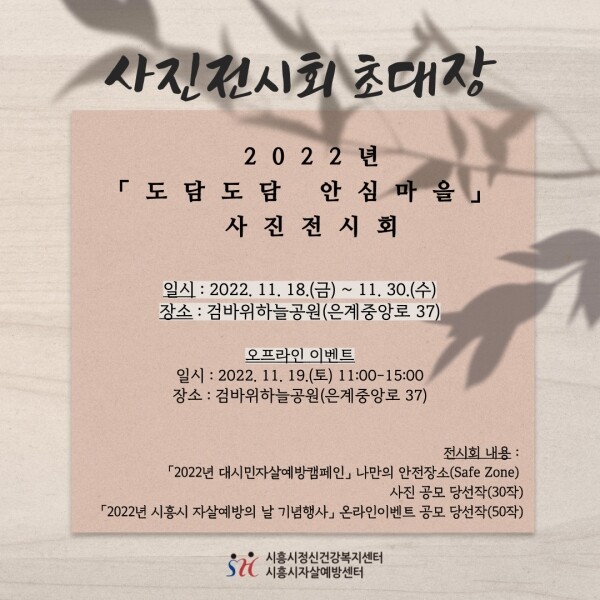 시흥시자살예방센터 담당자는 “이번 전시회를 통해 시민들이 공감과 위로를 받는 시간이 되길 기대하며 시민들의 많은 관심과 참여를 바란다”고 전했다.