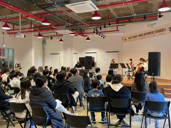‘오픈클래스’는 서울대 음악멘토링에 관해 궁금하거나 향후 참가할 의향이 있는 예비 초4~중3 학생 및 학부모에게 프로그램을 소개하는 자리로 마련돼, 악기별 멘토링 방식, 오케스트라 합주연습 등 교육 운영 안내와 참가신청 학생을 대상으로 서울대 음대 학부생과의 멘토링 기회를 제공했다.