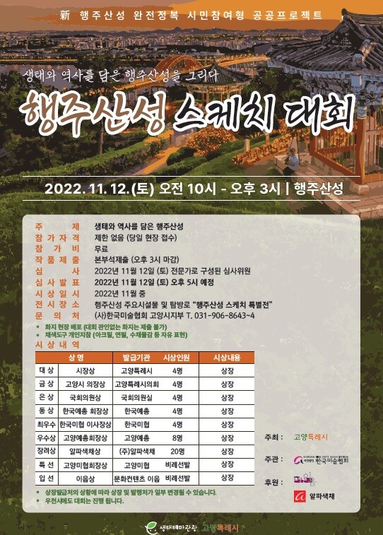 스케치 대회는 2022년 문화체육관광부의 생태녹색관광 활성화 공모에 선정된 ‘新행주산성 완전정복’의 일환으로 추진되는 참여형 공공프로젝트로 고양시가 주최하고 한국미술협회 고양지부에서 주관한다.