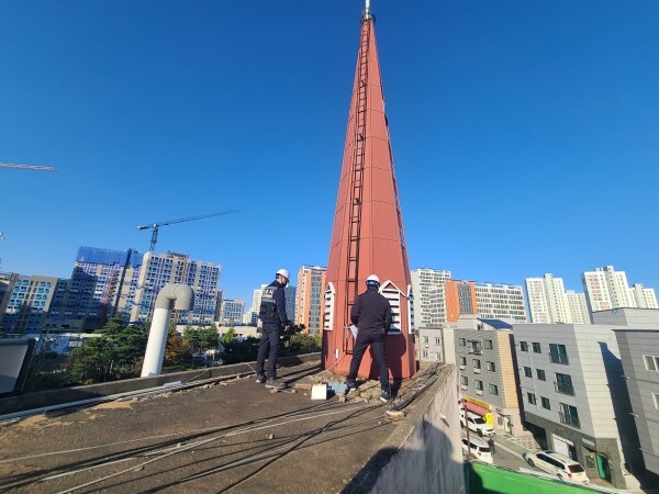 특히 대부분의 첨탑이 건물 옥상층에 좁고 높게 설치되어 있는 현장 여건상 접근이 어려운 부분은 드론 장비를 활용해 지지구조물의 상태 흔들림 및 기울어짐 상태 주요 구조부재의 부식 상태 등 시설물의 안전관리 상태를 중점 점검함으로써 안전의 사각지대를 최소화했다.