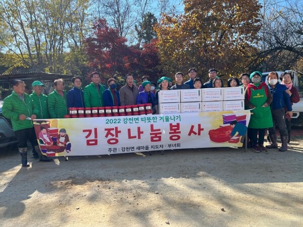 이날 행사는 강천면 새마을지도자·부녀회에서 주관했으며 김장김치 재료는 회원들이 직접 가꾸고 수확한 배추와 무를 활용했다.