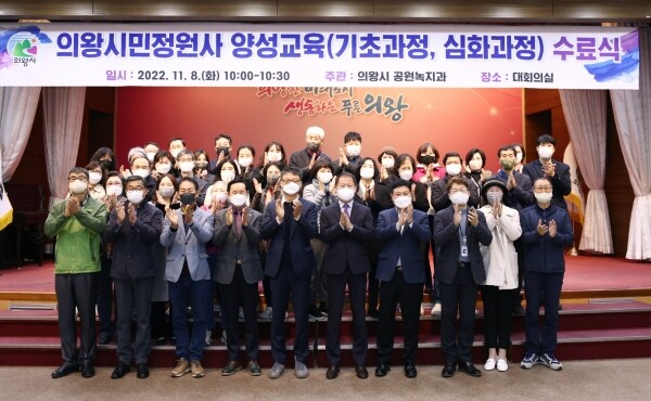 이날 심화과정을 수료한 학생들은 인증시험을 거쳐 제3기 의왕시민정원사로써 시민정원조성, 정원해설, 정원가꾸기 등 다양한 봉사활동에 참여하게 되며 기초과정 수료생들은 향후 개설되는 심화과정 교육을 이수할 예정이다.