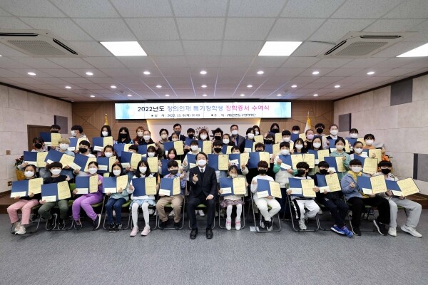 인천동구장학재단은 지난 8일 구청 소나무홀에서 김찬진 이사장을 비롯해 장학재단 이사, 장학생 및 학부모 등이 참석한 가운데 ‘2022년도 창의인재특기 장학생 장학증서 수여식’을 개최했다고 밝혔다.