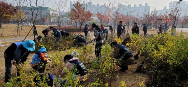 수원심꾸기봉사단·기후행동네트워크·시민단체 관계자 등 참여해 청소년문화공원에 관목 2800주 식재