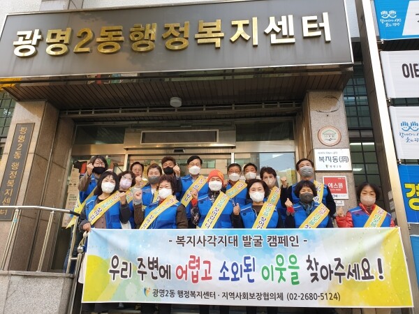 김영진 광명2동장은 “우리 주변의 어려운 이웃을 발견하면 즉시 행정복지센터로 알려줄 것을 바란다”며 “동에서도 복지사각지대 발굴을 지속적으로 추진할 수 있도록 적극 지원하겠다”고 전했다.