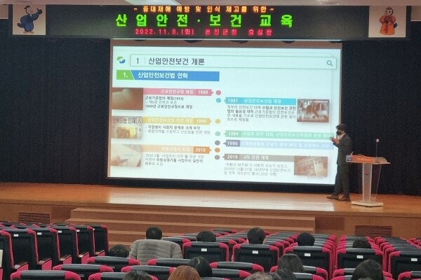 이번 교육은 지난 1월 27일 시행된 중대재해처벌법이 군 사업장에 적용됨에 따라 담당공무원의 법 이해도 제고 및 안전·보건조치 역량 강화를 위해 실시했으며 전문적인 교육진행을 위해 안전보건진흥원 소속강사를 초빙해 사업장에서 준수해야 할 안전·보건 확보 의무사항 등 이론을 바탕으로 하는 실무중심의 업무처리 방안에 중점을 두고 실시했다.