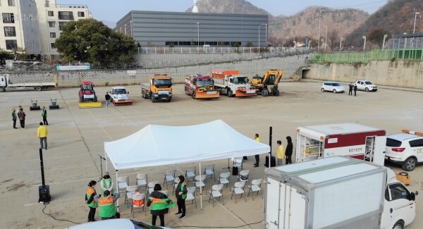 이번 훈련은 폭설대응 제설장비 기능 조작 훈련뿐 아니라 도로가 전기차 방전 상황을 설정해 이동불가에 따른 견인 조치 훈련도 실시했다.