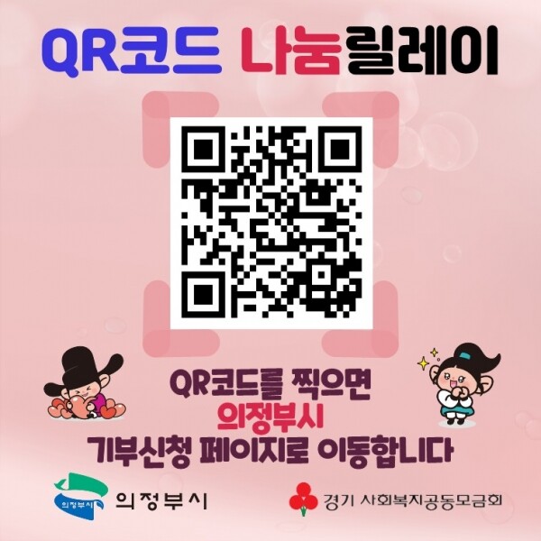 QR코드 기부의 경우 간단한 개인정보 입력과 신용카드, 계좌이체, 각종 페이 등 다양한 방법으로 경기사회복지공동모금회 의정부시 접수계좌로 기부되어 경기사회복지공동모금회에서 기부금 영수증 발행이 가능하다.