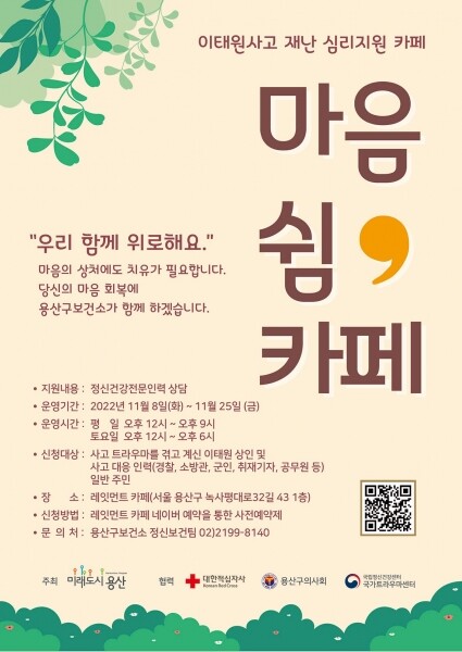 재난심리지원 카페 ‘마음, 쉼’도 운영된다.