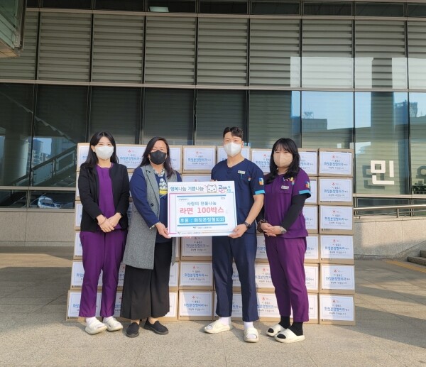 백승욱 화정본정형외과 대표는 “어려운 이웃들에게 보탬이 되길 바라는 마음으로 라면 100박스를 전달하게 됐다.