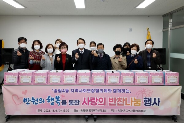 어려운 이웃 25명의 건강한 식생활과 안부확인을 위해 마련한 이번 행사는 송림4동에서 추진한 ‘만원의 행복’ 정기 기부 사업을 통해 모금된 재원으로 추진했으며 앞으로도 매월 나눔 행사를 지속할 예정이다.