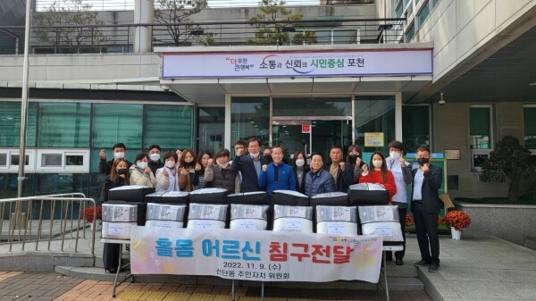 선단동주민자치위원회는 약 150만원 상당 침구류를 마련해 관내에 거주하는 홀몸 어르신 15가구에 직접 전달하며 안부를 살폈다.