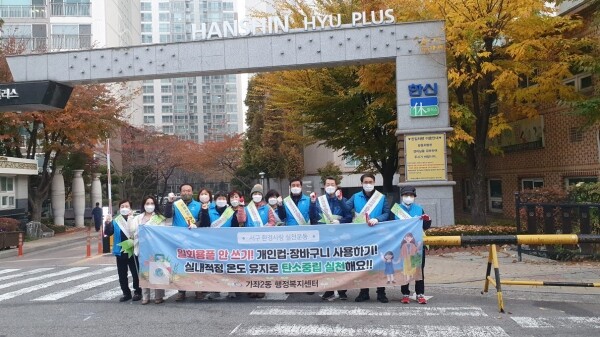 여기에 더해 가좌2동은 클린업데이와 함께 탄소중립 실천 다짐을 위한 ‘환경사랑 구민실천 캠페인’을 실시해 장바구니 및 텀블러 사용하기, 음식물 쓰레기 줄이기, 재활용 올바른 분리 배출하기 등 일상에서 손쉽게 실천할 수 있는 환경사랑 캠페인을 전개해왔다.