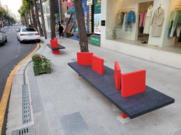 구는 보행자가 쉴 공간이 부족한 테헤란로의 역삼역부터 국기원 사거리까지 벤치 12개를 설치해 휴식 장소를 제공한다.