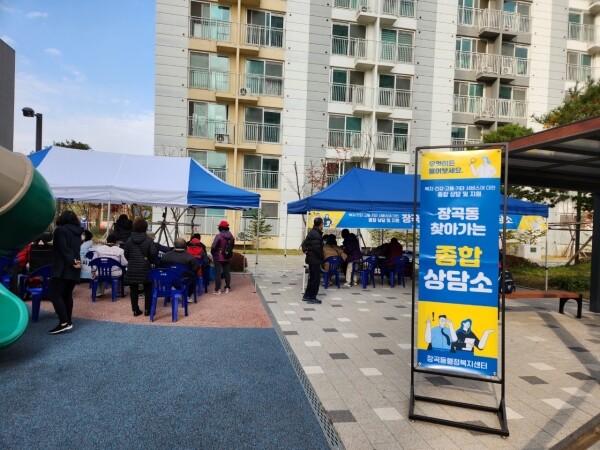 이번 ‘찾아가는 종합상담소’는 기본 운영되는 복지상담·건강상담·일자리상담·위기이웃 제보·후원 문의 등 5개 창구 외 LH19단지에서 심혈관 기능 검사, 서희스타힐스에서 아동학습인지검사 및 양육자태도검사가 병행 운영됐다.