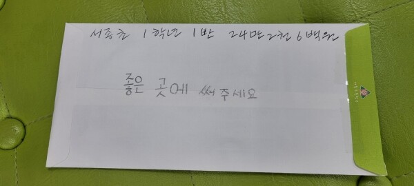 김진선 서종면장은 “몸과 마음이 추운 계절 아이들의 따뜻한 마음이 담긴 성금 봉투를 받으니 너무나 행복하고 아이들의 고운 마음을 잘 전달하겠다”고 말했다.