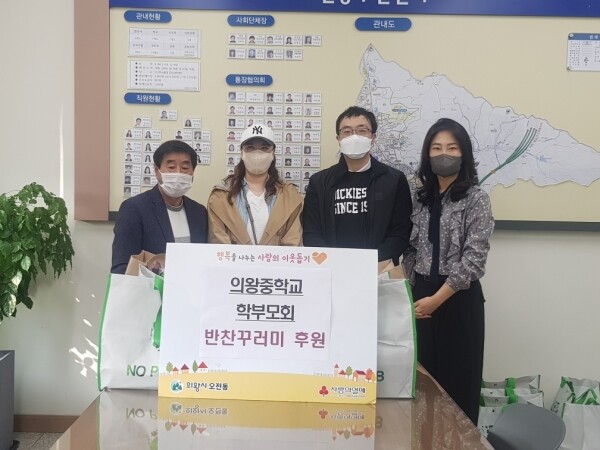 정유헌 오전동장은 “어려운 시기에도 이웃을 위해 봉사에 참여해준 의왕중학교 학부모회 회원들에게 감사드리며 반찬 준비에 어려움을 겪는 취약계층 어르신 및 아이들에게 잘 전달하겠다”고 말했다.