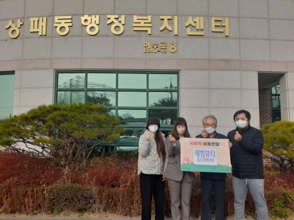 새범뷰티는 미용용품을 개발하고 판매하는 업체로 기탁받은 성금은 기부자의 뜻에 따라 관내 어려운 이웃을 위한 사업에 사용될 예정이다.