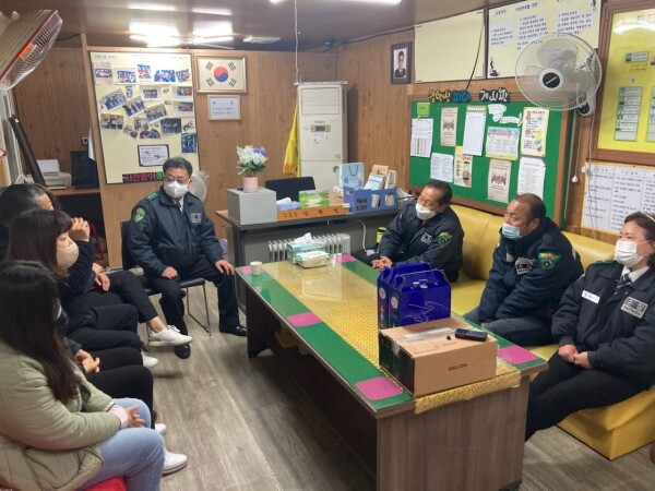 이날 방범초소 위문은 평소 방범활동을 통해 동의 안전을 책임지고 있는 방범대원을 격려하고 위문품을 전달하기 위해 이루어졌다.