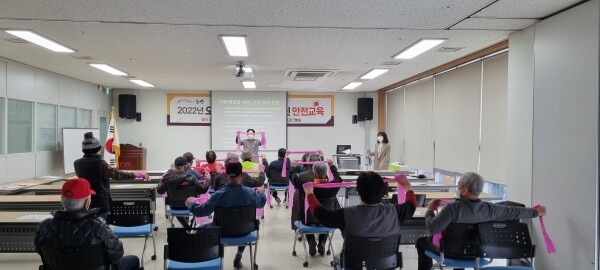 이날 교육은 폐지 줍는 어르신들 20여명이 참석한 가운데 겨울철을 맞아 낙상사고 예방을 위한 생활 수칙과 사고 발생 시 조치 방법 등에 대한 내용으로 이뤄졌다.