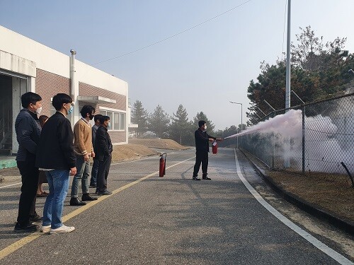 이번 훈련은 지난 1월 소방서와 합동으로 진행된 훈련에 이어 실시되는 훈련으로 전 직원이 부여받은 임무를 숙지하고 소화기 사용 실습 등 화재시 초기대응 훈련으로 진행됐으며 아울러 식·용수 사고 대비 현장조치 행동매뉴얼 교육을 병행 실시해 위기시 현장반응 속도를 단축하는데 중점을 두었다.