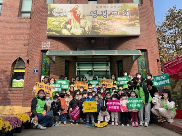 이날 평소 지구 지키기 활동에 관심이 많은 ‘영광 몬테소리 어린이집’의 아이들은 다회용 집게를 사용하거나 장갑을 끼고 고사리 같은 손으로 부모님과 함께 쓰레기를 주우며 길가에 버려지는 쓰레기로 오염되는 지구의 심각성에 대해 배우고 환경문제 해결을 위해 꾸준한 관심과 실천을 독려하는 시간을 가졌다.
