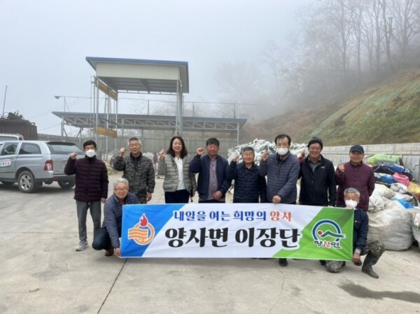 이명자 양사면장은 “이번 영농폐기물 수거 활동이 깨끗한 자연환경 보전에 많은 도움이 되었기를 기대한다”며 “농가 일손부족과 고령화로 폐기물 처리에 어려움이 많지만 언제나 앞장서 애써주시는 이장단에 감사드린다"고 밝혔다.
