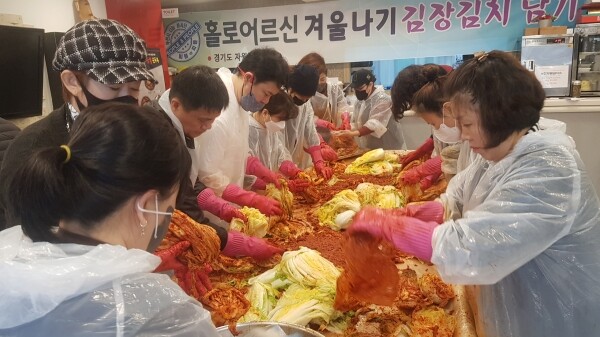 이날 경기피플앤피플 회원 25명이 아침 일찍부터 부천시 약대동 소재의 식당에 모여서 김장김치 1000kg를 직접 만들었으며 10개 동 행정복지센터를 통해 통합돌봄 대상자 100명에게 김장김치를 전달될 예정이다.