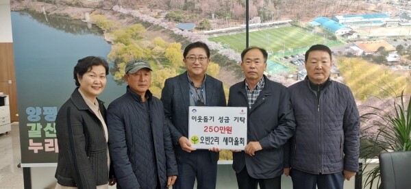 조근수 양평읍장은 “요즘 같은 불경기에 이렇게 한 뜻으로 성금을 기탁해줘서 아직은 세상이 따뜻하다는 것을 느낀다”며 “기부하신 금액은 양평읍의 복지사각지대에 놓인 이웃을 위해 잘 사용하겠다”며 감사를 표했다.