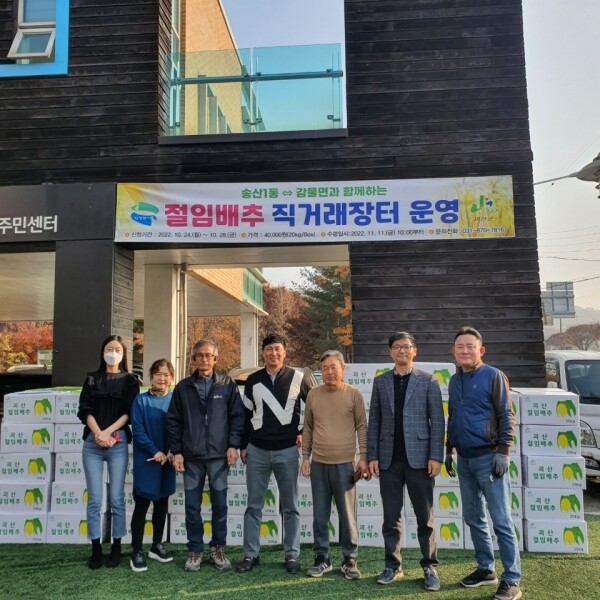 이성희 송산1동장은 “자매결연지와 지속적으로 교류해 유기농업군 괴산의 농산물 인지도를 높이고 농가에 실질적 도움이 되기를 바라며 주민들이 안심하고 구입할 수 있는 정기적인 직거래 장터 활성화를 위해 최선을 다하겠다”고 밝혔다.