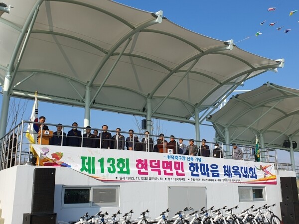 안홍규 현덕면 체육회장은 “이번 체육대회가 코로나19로 인한 공백기를 떨치고 주민 상호간의 친목과 우의를 다지며 면민이 하나가 되는 자리가 되길 바란다”고 밝혔으며 공강구 현덕면장은 “이번 체육대회를 계기로 현덕면의 화합과 발전이 지속되기를 기원한다”고 전했다.