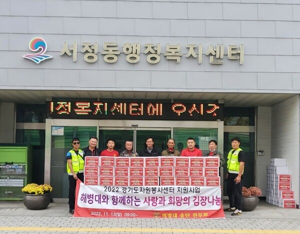 이승희 회장은 “해병대 송탄전우회 회원들이 직접 담근 김장 김치를 서정동 지역주민들에게 나누게 되어 기쁘고 지역주민들이 맛있게 드셨으면 좋겠다”고 말했다.