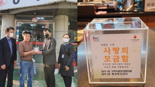 이 날 전달된‘사랑의 모금함’은 내년 연말까지 해당 영업장에 비치될 예정이며 이를 통해 모인 성금은 사회복지공동모금회를 통해 마두1동 저소득 주민들을 위한 다양한 지역사회보장협의체 특화사업에 사용될 예정이다.