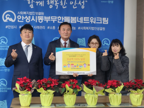 정은주 안성시동부무한돌봄네트워트팀 센터장은 “모금 활동이 성황리에 종료될 수 있도록 파트너단체로 함께 참여해주신 지역 내 단체들과 관외 지역주민들에게도 감사드린다”고 말했다.