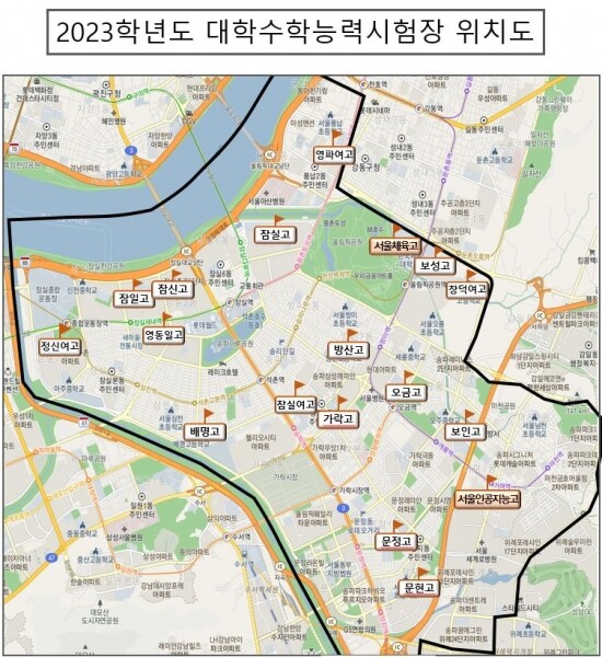 송파구에는 일반시험장 16개교 별도시험장 2개교 총 18개의 학교에 시험장이 설치됐으며 9,109명의 수험생이 시험을 치른다.