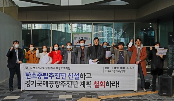 이날 기자회견에서 유호준 의원은 “도민들이 이제 기후변화가 아니라 기후위기라고 한다”며 기후위기의 심각성을 언급한 뒤 “김동연 지사가 공약과 도정질의에서 약속한 2030 온실가스 40% 감축, 임기 내 16.2% 감축을 위해서라도 경기국제공항 신설은 철회되어야 한다”며 탄소·환경 관점에서 경기국제공항 신설에 대한 반대의 뜻을 명확히 밝혔다.