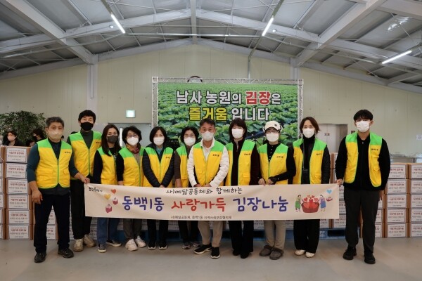 [뉴스서울] 용인특례시 기흥구 동백1동은 처인구 남사읍 남사농원에서 사랑가득 김장 나눔행사를 진행했다고 15일 밝혔다.