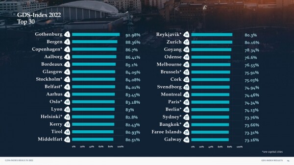 지난 해 2021년에는 서유럽 도시들의 평균 지수인 61%에 인접한 60%를 달성한데 이어 올 해는 78%를 달성함으로써 세계적인 지속가능성 도시들과 어깨를 함께할 수 있게 됐다.
