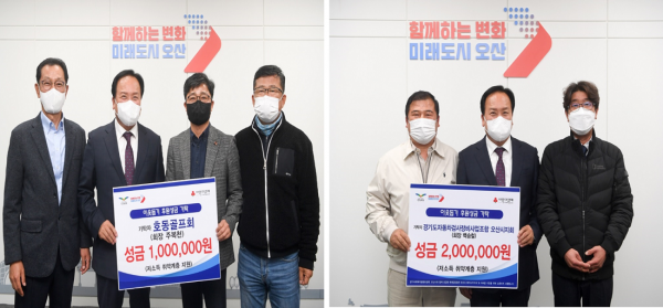 이에 이권재 오산시장은“앞장서서 나눔을 실천해주신 경기도자동차검사정비사업조합과 호동골프회에 감사드린다”며 “전해주신 온정을 통해 지역사회 내 나눔문화 확산에 기여할 수 있도록 노력하겠다”고 밝혔다.
