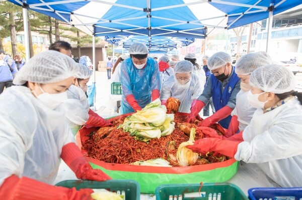 격려차 행사장을 방문한 강범석 서구청장 역시 직접 배추를 버무리며 김장 나눔에 힘을 보탰다.