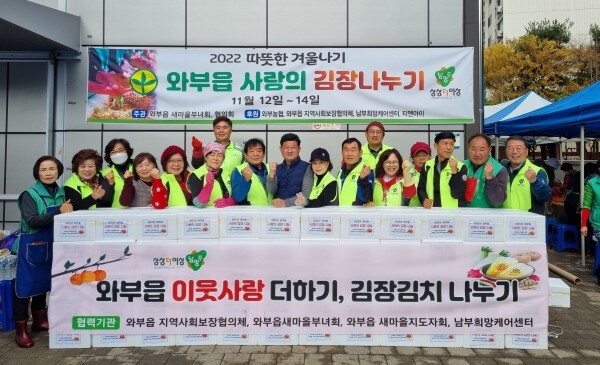 이번 와부읍 ‘사랑의 김장김치 나눔’행사는 와부읍 새마을지도자회·새마을부녀회가 주관하고 지역사회보장협의체, 아파트 생활개선회 등이 협력해 진행됐으며 직접 수확한 배추와 무를 사용해 절이고 버무리며 이웃 사랑의 마음을 듬뿍 담았다.