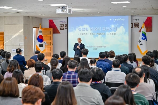 이날 교육은 건전한 조직문화를 조성하고 청렴 문화 확산을 위해 마련된 것으로 국민권익위원회 청렴연수원 소속 정임수 강사를 초빙해 강의를 진행했다.